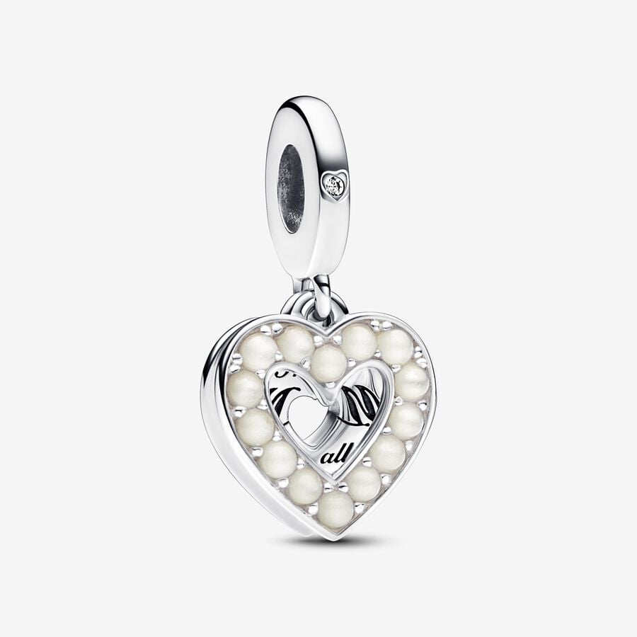 قلادة أم مزدوجة متدلية على شكل قلب أبيض لؤلؤي