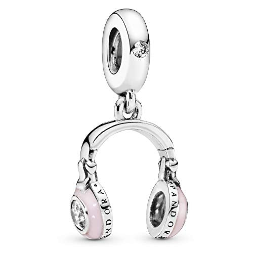 سماعات رأس فضية متدلية مع زركونيا مكعبة شفافة ومينا وردية 797902EN160