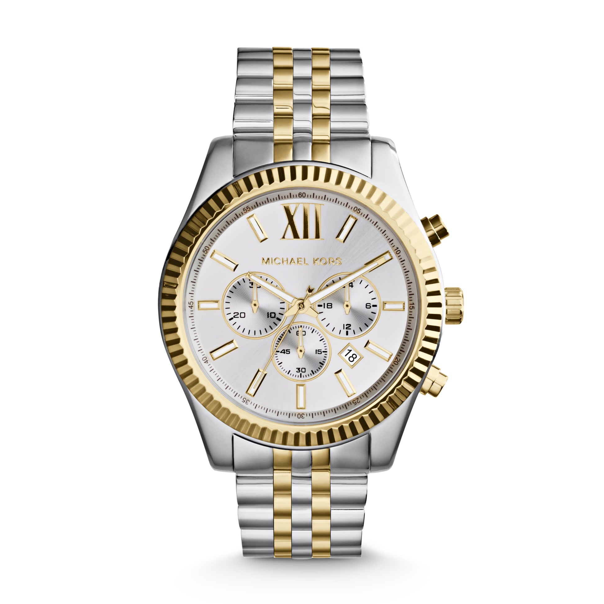 - This classic Michael Kors Lexington chronograph watch features a silver-tone dial set on a gold and silver-tone stainless steel silhouette.